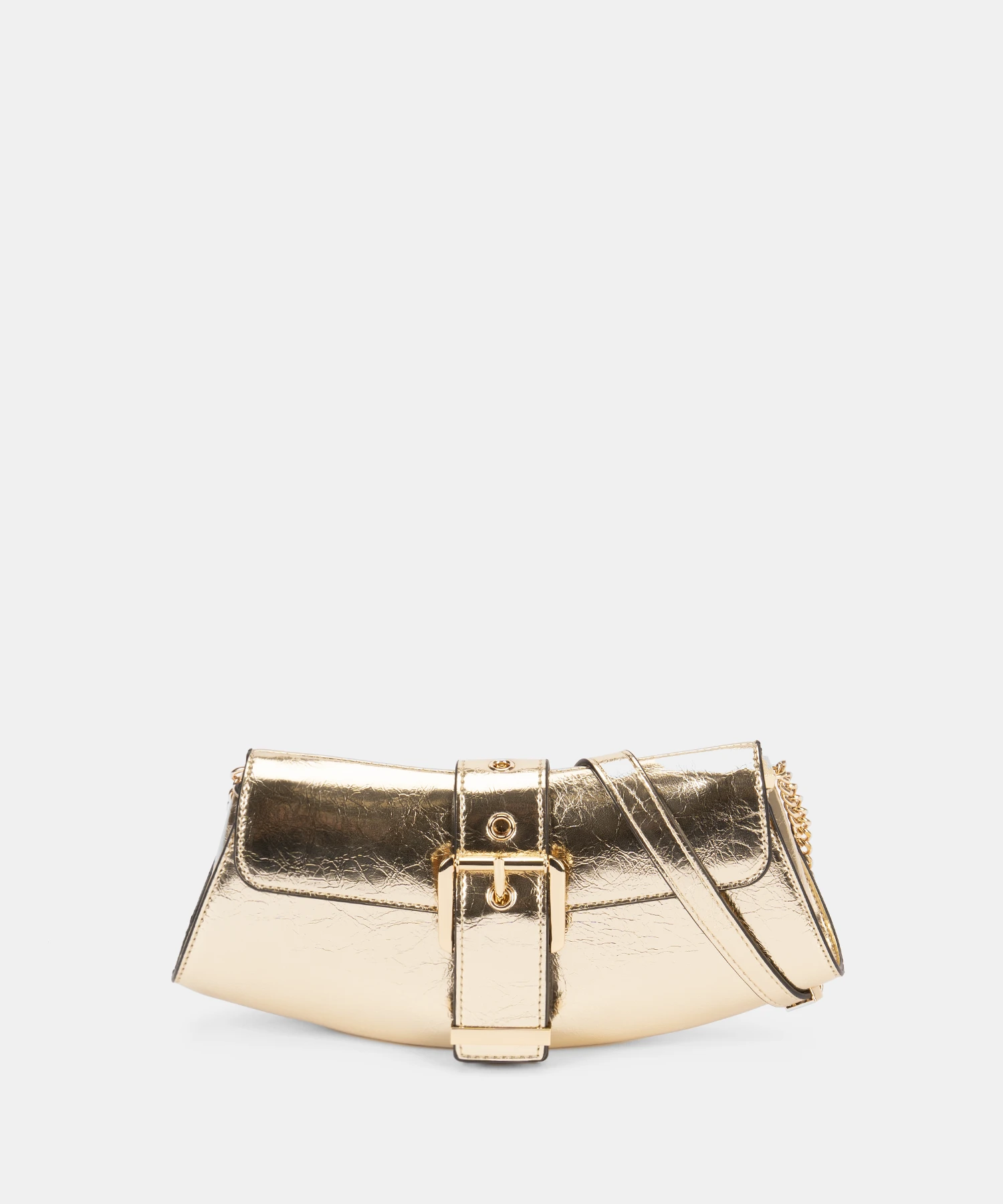 Puedes llevarlo de tres formas distintas: al hombro, en la mano o cruzado como bandolera. Su correa combinada en material liso y eslabones metálicos aporta un estilo moderno, mientras que la solapa con hebilla frontal asegura estilo y seguridad.