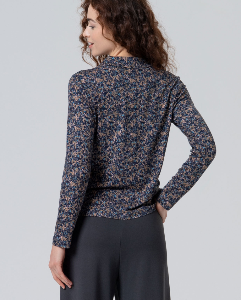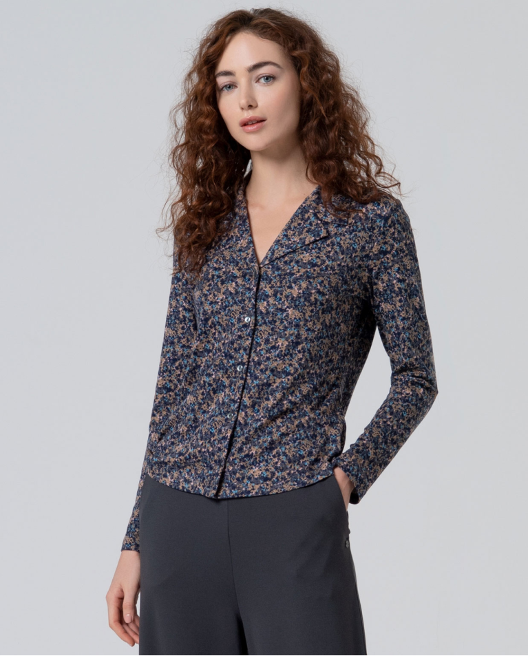 Camisa SURKANA de estilo smoking con estampado original, confeccionada en poliéster reciclado con acabado elástico que se adapta al cuerpo con comodidad.