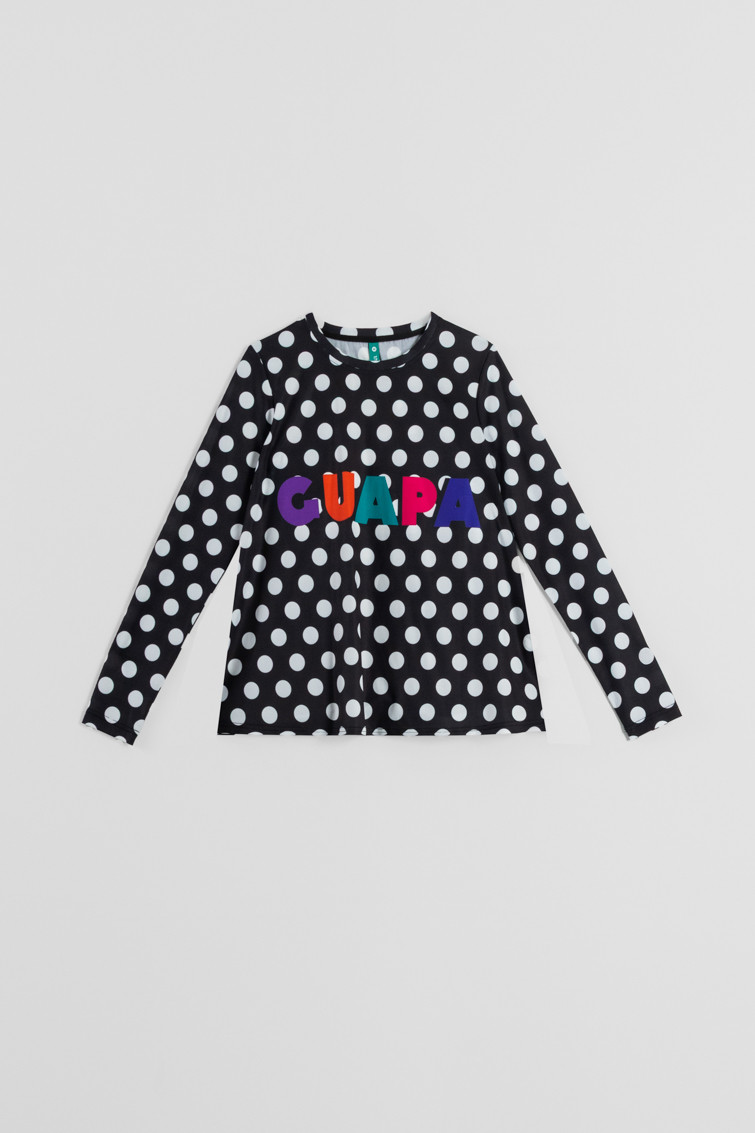 Camiseta Corte A Estampado Topos Blanco y Negro Colección Guapa de Lolina