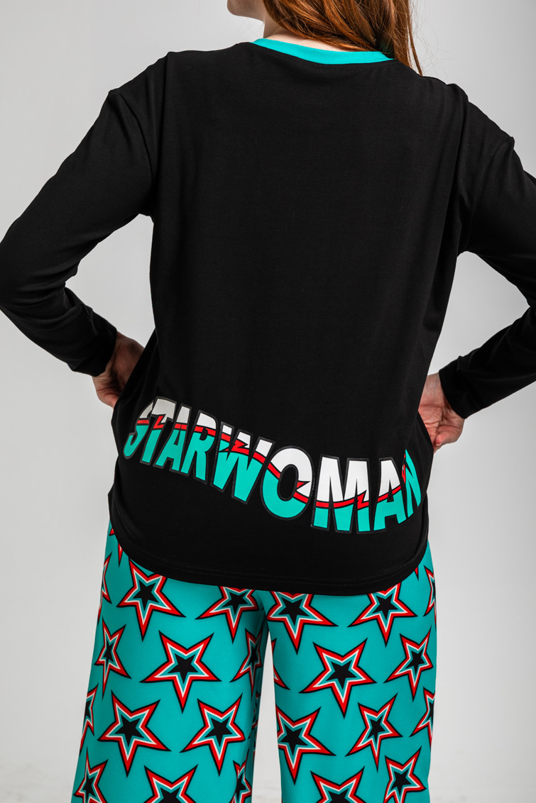 Camiseta Oversize Negra con Estampado de Estrella – Starwoman de Lolina