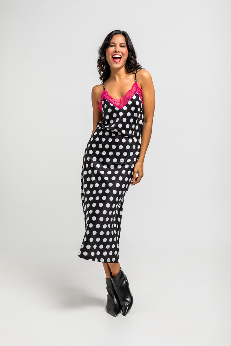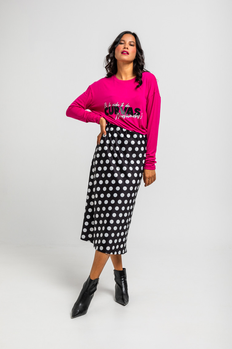 Camiseta Corte A Estampado Topos Blanco y Negro Colección Guapa de Lolina – XS