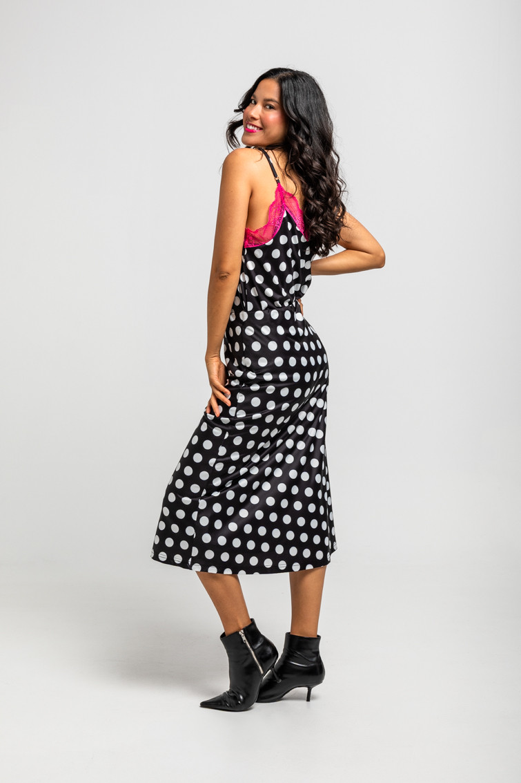 Falda Evasé Midi Estampado de Topos Monocromático Blanco y Negro – Guapa de Lolina
