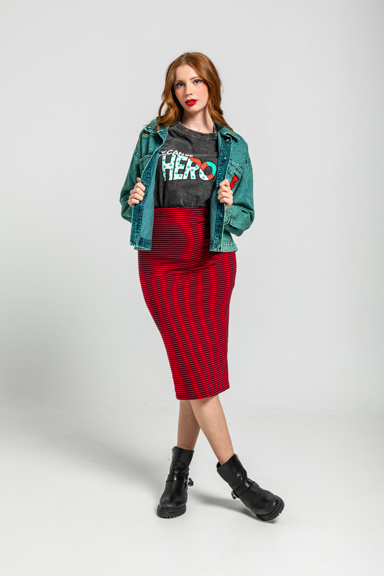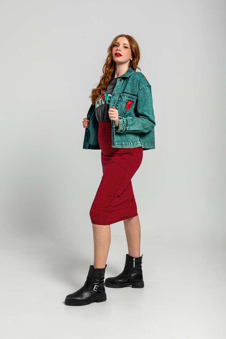 Falda Midi Elástica de Rayas Rojas y Negras Let´s Dance de Lolina