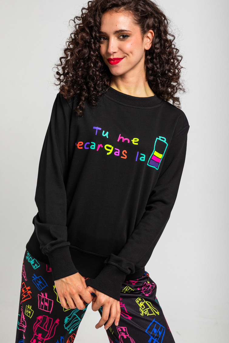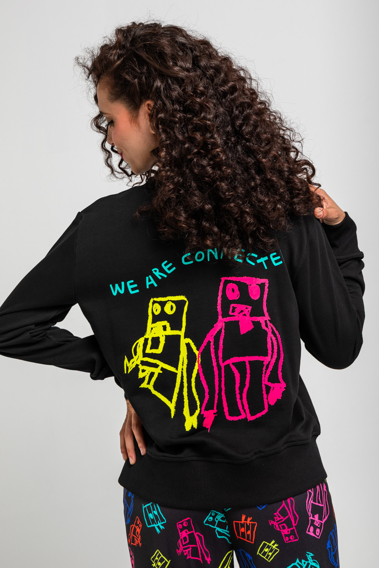 Sudadera Negra de Robots Multicolor – We are connected de Lolina