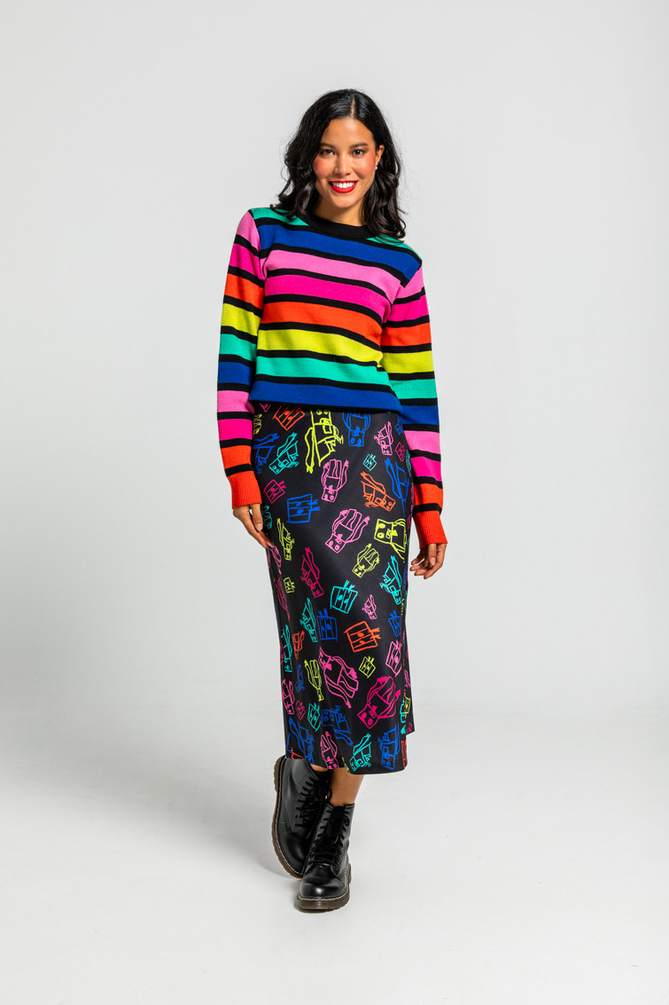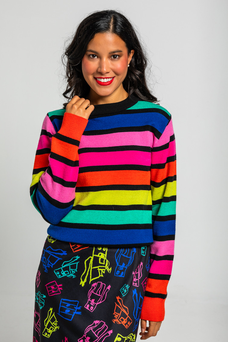 Suéter Ajustado de Garabatos de Robots Multicolor – We are Connected de Lolina