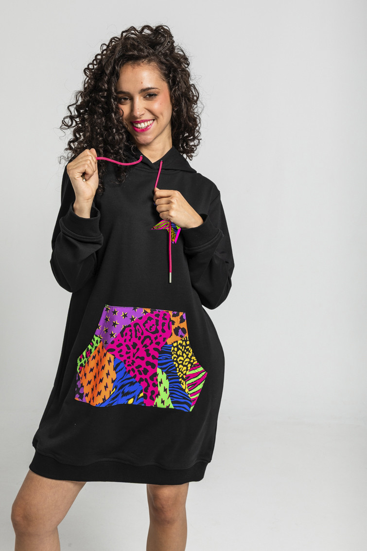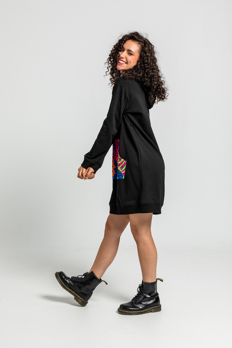 Vestido Sudadera Negro Estampado Animal Print – Caótica de Lolina